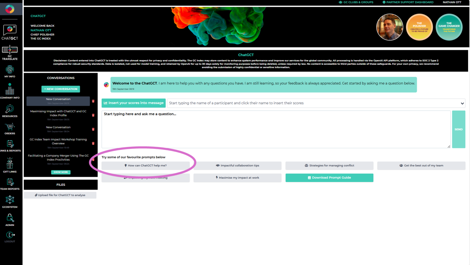 That’s why I can’t stress enough just how powerful ChatGCT really is. Whether you’re new to AI and a bit cautious, or already embracing it, ChatGCT has been transforming the way people use The GC Index, for themselves, their teams, their clients, and their participants.